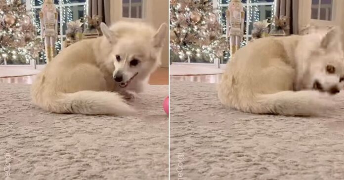 Holiday decorations usually bring a sense of calm and peace to a home, but Ghost has other plans this December. Amid the twinkling lights and tall nutcrackers, this energetic pup locks herself into a battle with her own anatomy. Her owner from @ghostthecorgi shared a chaotic dog video that captures a festive mission gone perfectly sideways. It’s a hilarious look at the kind of “main character energy” only a determined Corgi like Ghost can provide. While the living room looks ready for a calm Christmas, the floor is officially a high-speed spinning zone.