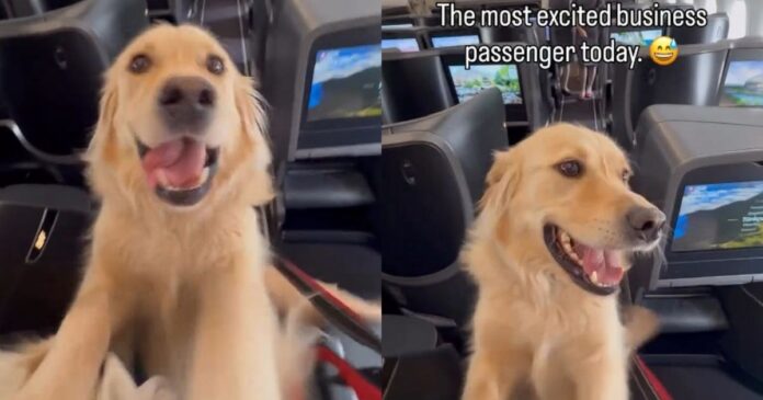 There’s nothing more gratifying than seeing your furbaby getting super excited and happy for a certain experience. This specific video captured an adorable Golden Retriever named Merlot, who often boards on flights along with his owner, getting thrilled to travel in business class.