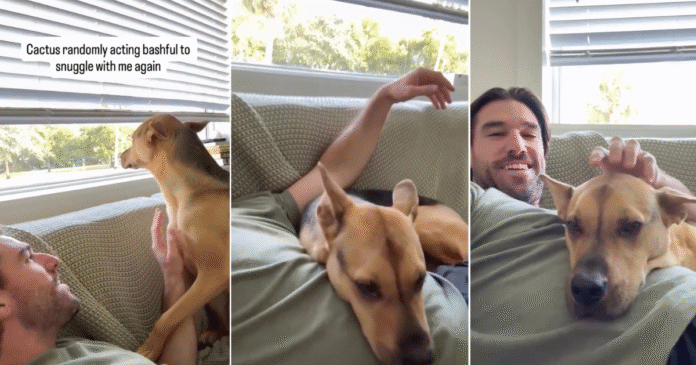 Under the video, the rescue dog’s owner explains in the caption, “I genuinely don’t know what triggers these little moods, but sometimes snuggle mode hits and Cactus suddenly turns into the shyest, most nervous little guy on the planet.” The caption continues to highlight the dog’s behavior: “It’s like he wants to cuddle but needs a minute to remember it’s allowed. I give him a little reassurance, he does a small emotional reset, and then he snaps right back like, ‘oh yeah, snuggles.’”