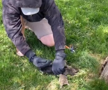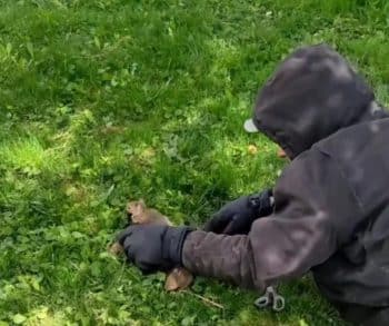 He worked slowly and patiently. Using careful hands, he began trimming only the fur that held their tails together. He avoided skin at all costs. Every small snip mattered. The squirrels flinched, confused and scared, but too exhausted to fight much more.