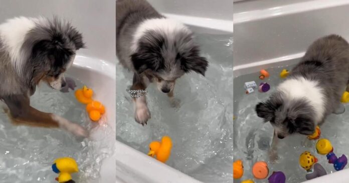 An adorable yet hilarious clip of a tiny dog has gone viral online. The video features Koda, a Toy Australian Shepherd. While some dogs tolerate bath time, this pup needs a luxury spa experience to bear with it, complete with a flock of 30 rubber ducks.