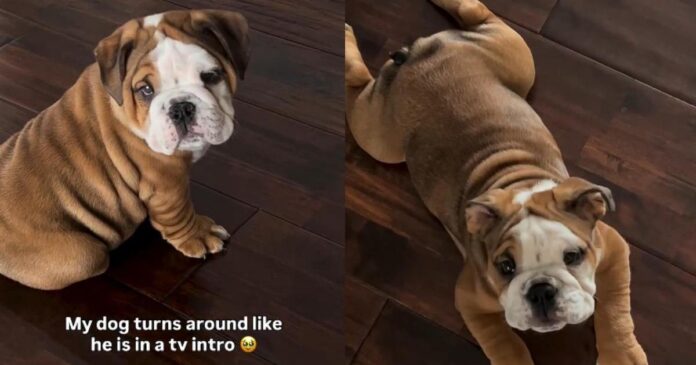 The onscreen text instantly reveals his secret talent: “My dog turns around like he is in a TV intro,” and once you see the video, you’ll agree. There’s something about that wide, earnest face, as Bulldogs have a natural talent for expressive closeups, that makes the whole moment land even harder.
